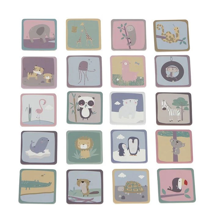 Auf jeder Karte befindet sich eine schöne Illustration eines Tieres. Das Kind lernt die Tiere kennen, das Gedächtnis, Konzentration und Spielentwicklung werden trainiert. Das Spiel kann von 1 bis 4 Personen gespielt werden.